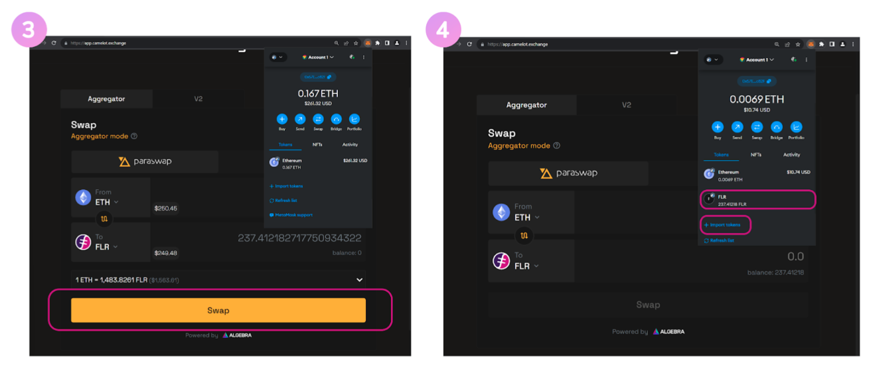 You will now have set up the swap for ETH to flrEUR. Complete the swap and accept all MetaMask transaction prompts.