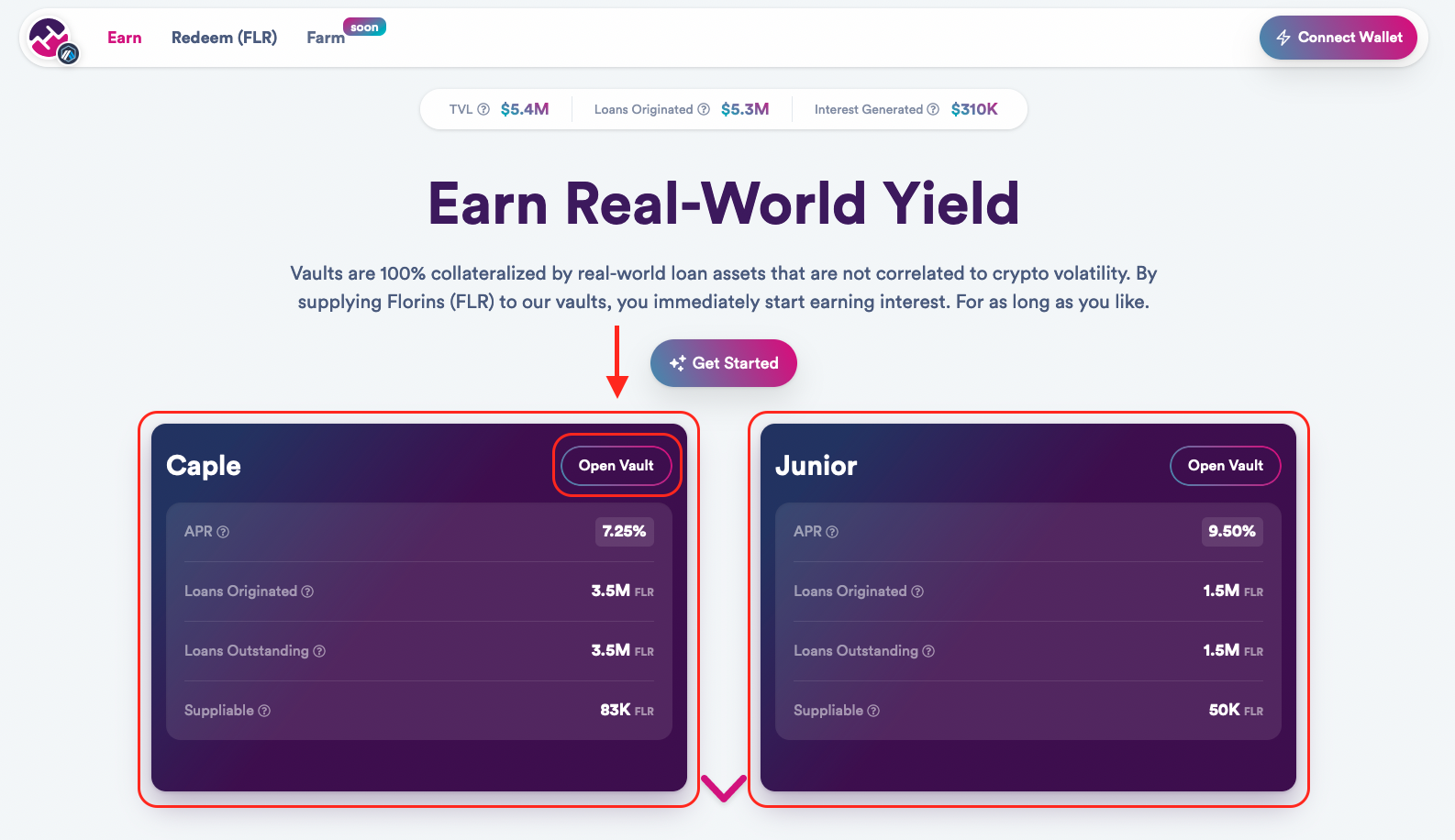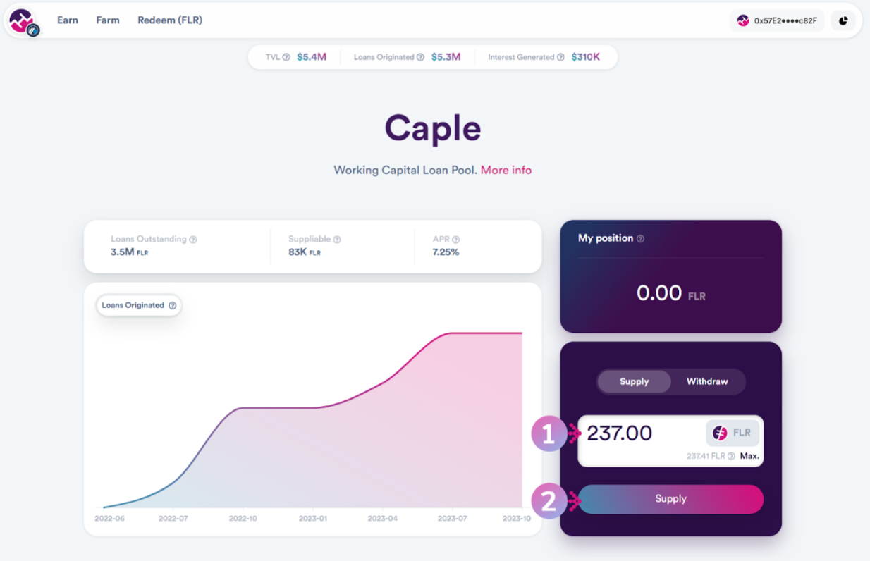 Once you have opened the vault, you will need to supply flrEUR. Enter the desired amount of flrEUR you would like to supply into the vault and click Supply.